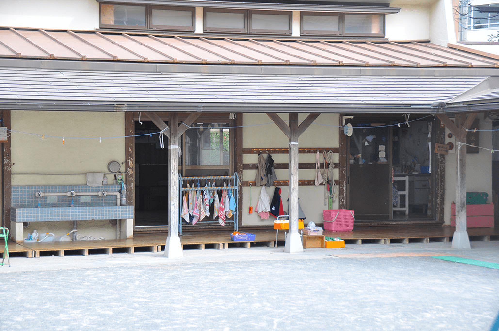 園舎の中、子どもたちの足の指の力をつけていきたいと考えて、ぞうりの生活を送っています。